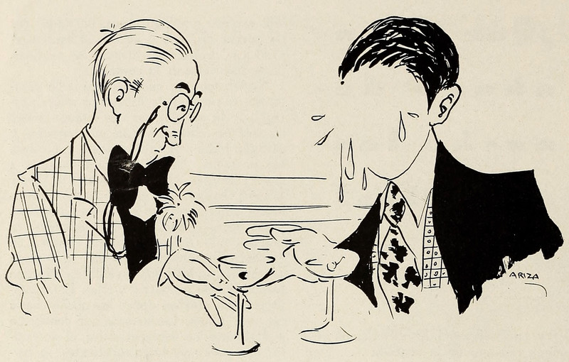 #vintage illustration #drunk #sloshed #1940s #faceless #no face #cocktails