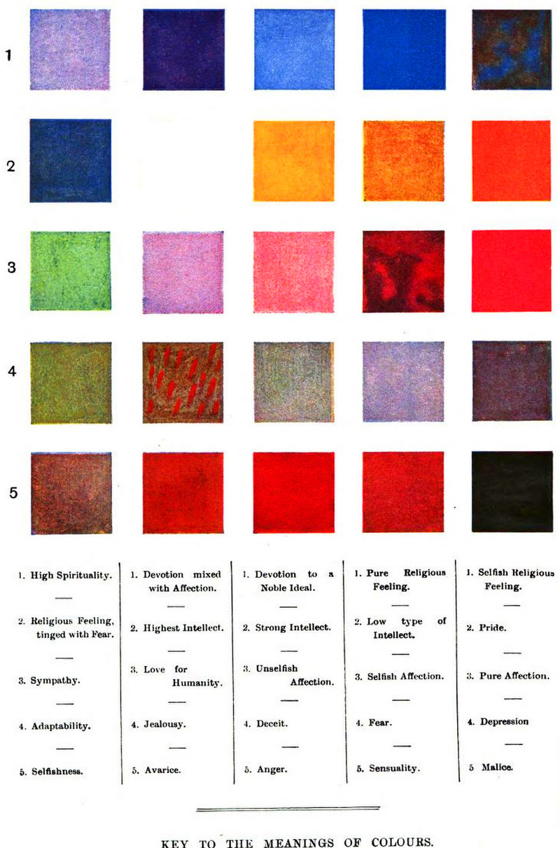 "Key to the meanings of colours."  From Thought-Forms by Annie Besant and Charles Webster Leadbeater, 1905.