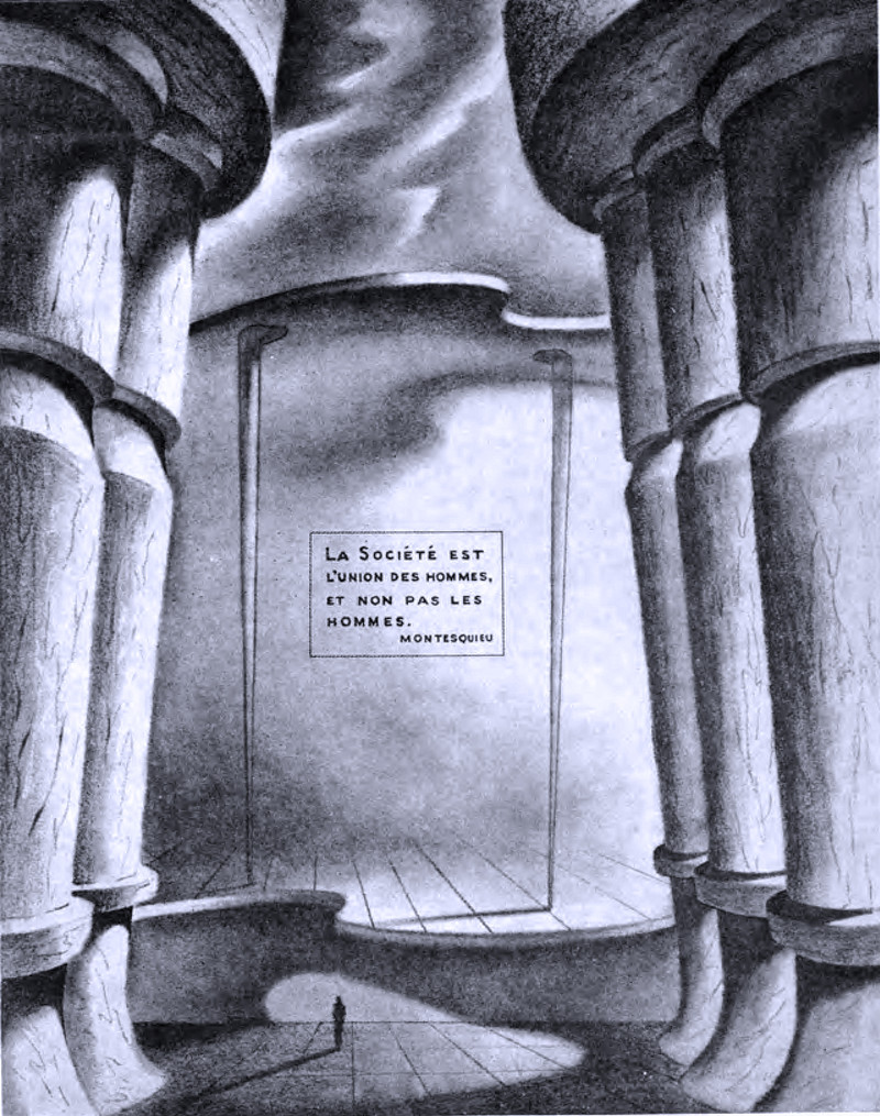 An illustration from a 1908 issue of Putnam's magazine. The caption reads: "A mysterious influence emanates from those wonderful columns. Not only the sight of them as you approach from London, but the queer, almost uncanny way in which they permeate the whole place. They follow you through the station, and into the train, and not for many miles can you get out from under the presence of those perfect shapes."