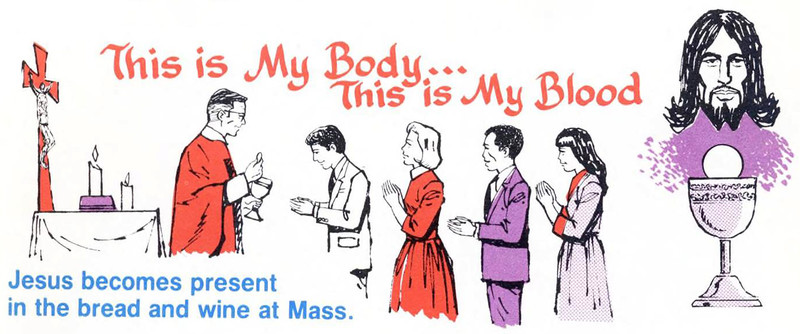"Jesus comes to us as our food in Holy Communion."  From My First Catechism by Lawrence Lovasik, 1983.