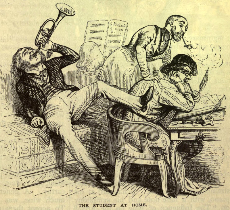 #vintage illustration #trumpet #musician #concentration #noise #studying