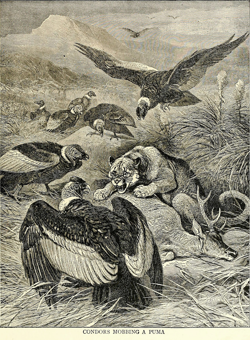 Condor versus puma: which do you wager for the win?  From All About Animals: Facts, Stories and Anecdotes, 1900.
