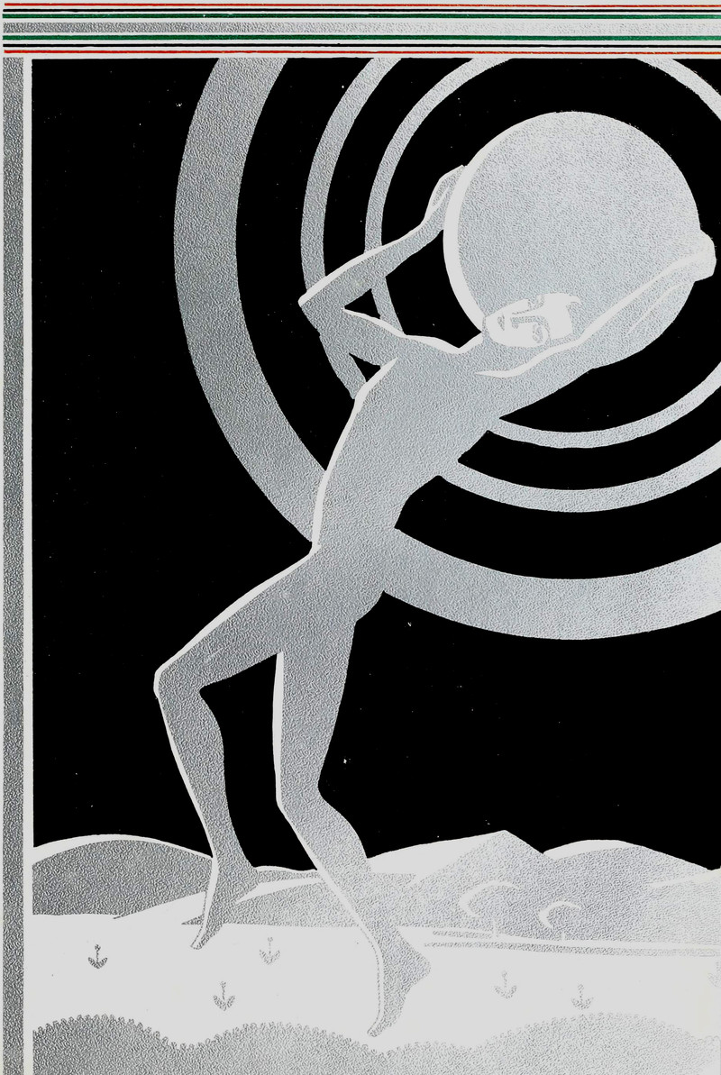 #vintage illustration #atlas #giant #moon #cosmic man #vintage yearbook #yearbook