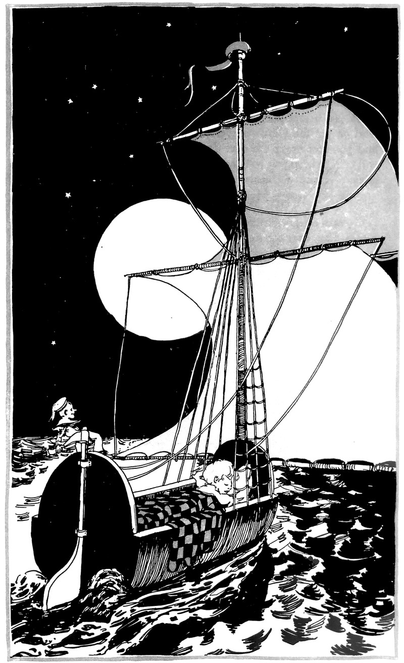 #vintage illustration #elf #full moon #sleep #ship #starry night #1920s #illustration #crib