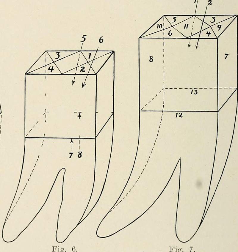 You've heard of "cube roots."  Here's what they look like.  From Technic and Scope of Cast Gold and Porcelain Inlays by Herman Hayes, 1918.
