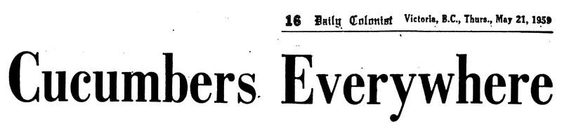 "Cucumbers everywhere."  From The Daily Colonist, 1959.