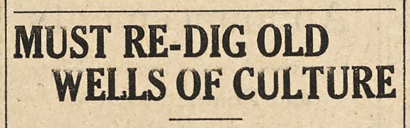 "Must re-dig old wells of culture."  From The Gateway, 1925.