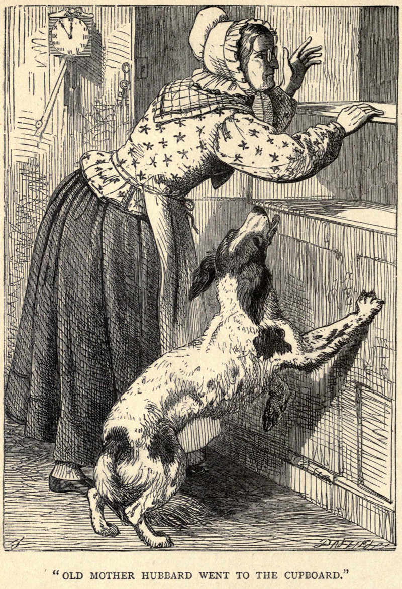 #vintage illustration #dog #illustration #nursery rhyme #mother hubbard #cupboard