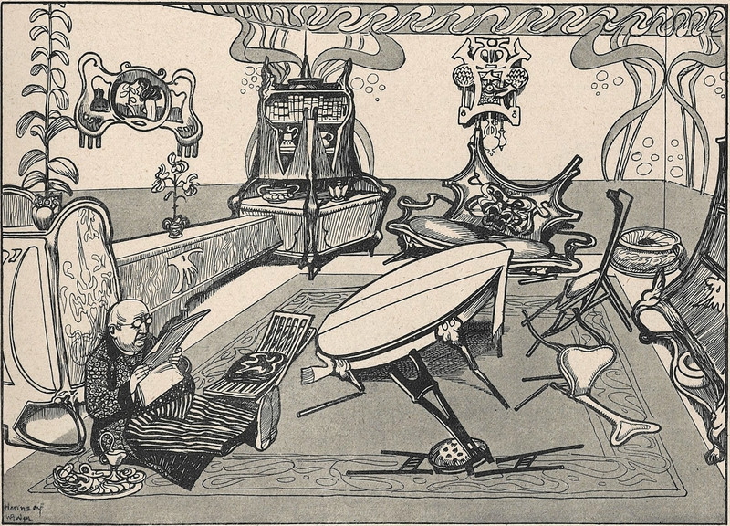 Everything in this room is cursed and haunted.  From Lustige Blätter, 1899.