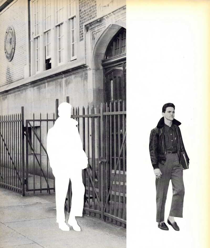 As we noted previously, we've seen figures cut out of photographs, but too often we forget that the cutout reveals the figures "light body" that continues to thoughtfully dwell in the scene. From Armour Institute of Technology's 1928 yearbook.