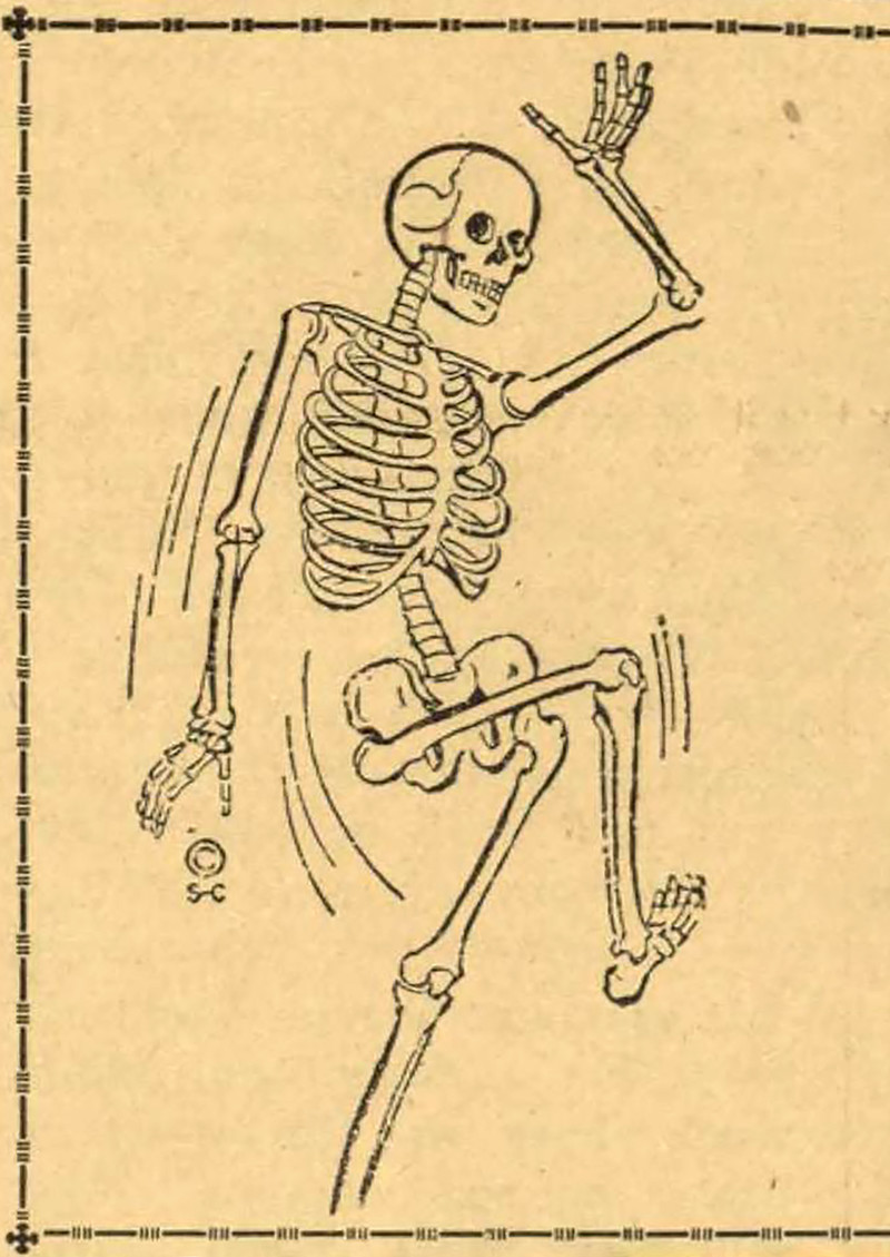 #vintage illustration #skeleton #dance of death #fraternity #vintage yearbook #yearbook #dancing skeleton