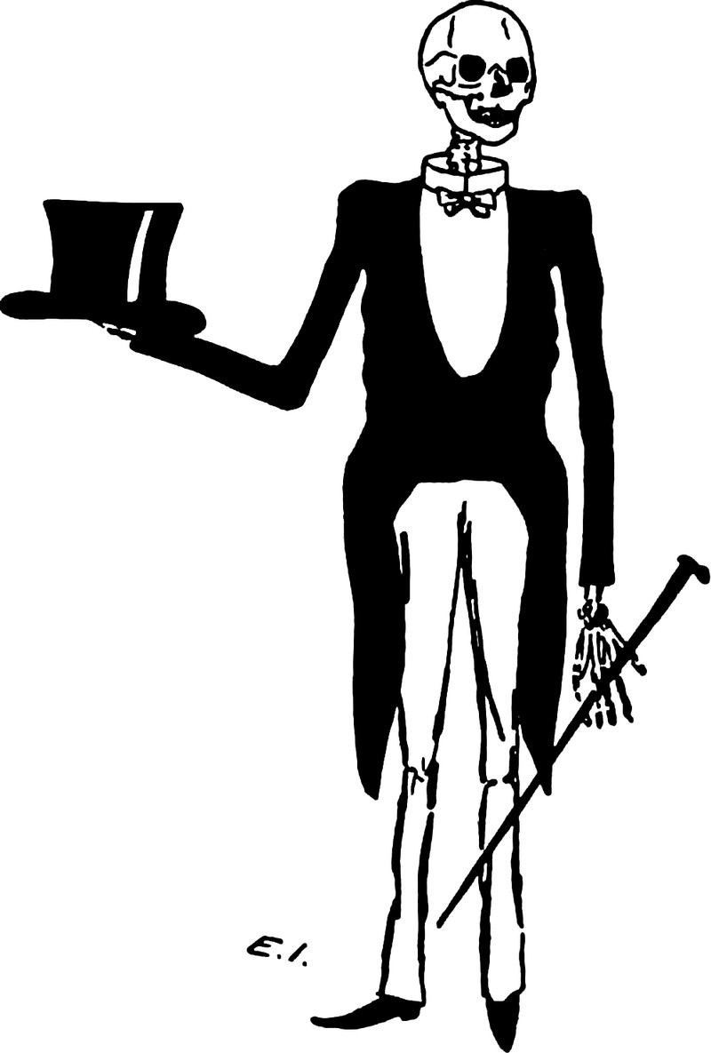 #vintage illustration #death #skeleton #grim reaper #tuxedo #dandy death #vintage yearbook #yearbook #illustration