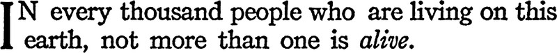 If you've ever wondered about people you encounter, here's the explanation: "In every thousand people who are living on this earth, not more than one is alive." From The Art of Being Alive by Ella Wheeler Wilcox, 1914.