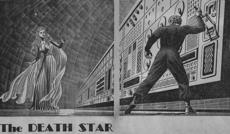 Here's a precursor to Obi Wan deactivating the tractor beam on the Death Star to help Princess Leia escape (nearly a quarter century before Star Wars debuted). From Super Science Stories, 1951.