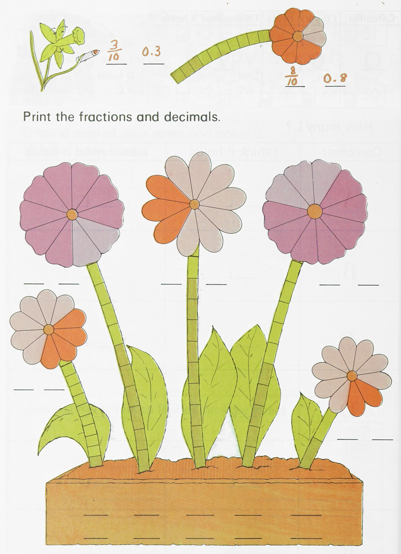 #vintage illustration #flowers #1970s #illustration #math #fractions #decimal