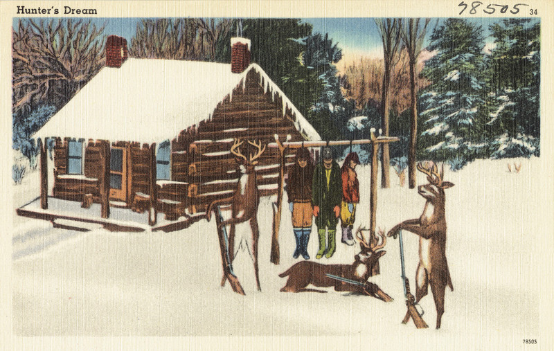 #vintage illustration #vintage postcard #tables turned #illustration #animal cruelty #deer hunting #postcard