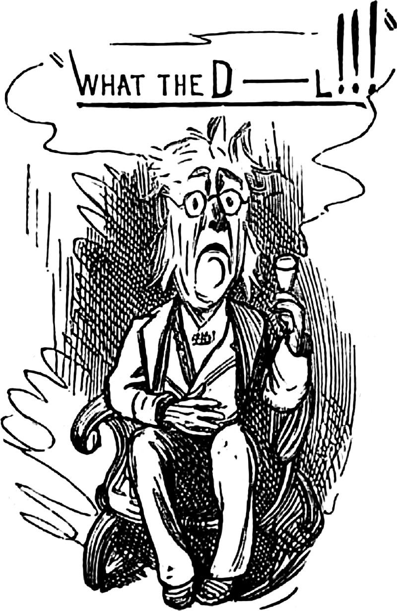 "What the D---L!!!"  From Judy, Or The London Serio-Comic Journal, 1879.