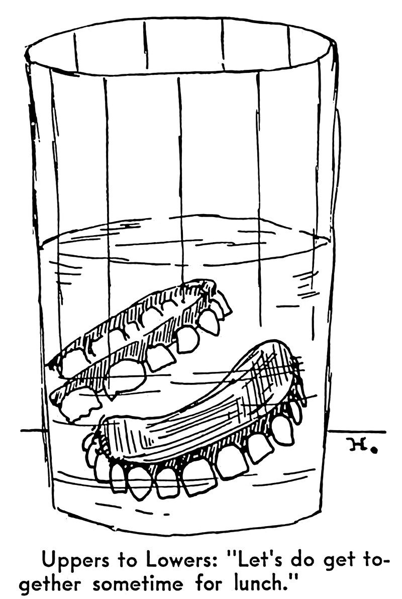 Before the wind-up false-teeth gag, "Yakity-Yak" (1950), you needed a special stand: "False teeth move naturally when mounted on new stand." From Popular Mechanics, 1920.