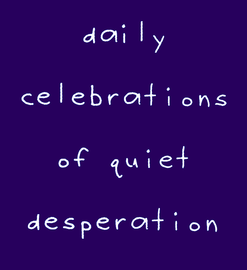 "Daily celebrations of quiet desperation."  From Happy Cruelty Day! by Bob Powers, 2007.