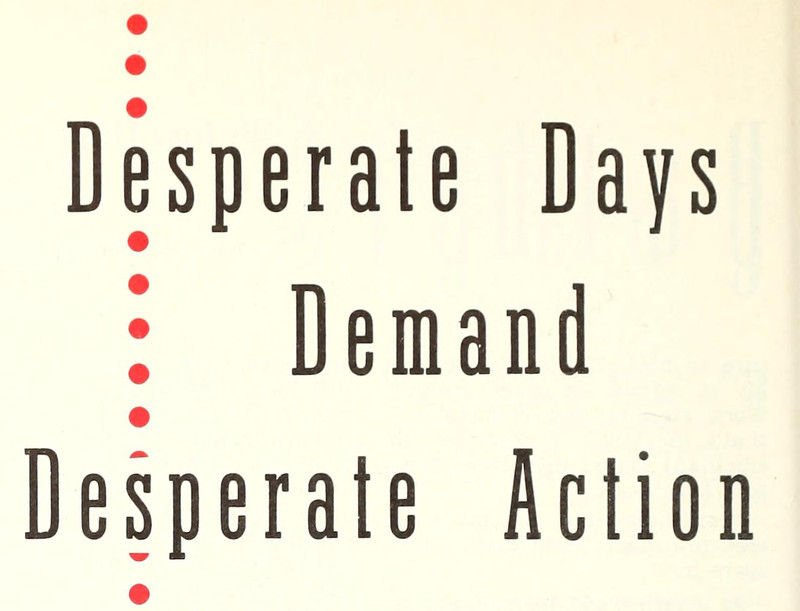 "Desperate days demand desperate action."  From Lighted Pathway, 1958.