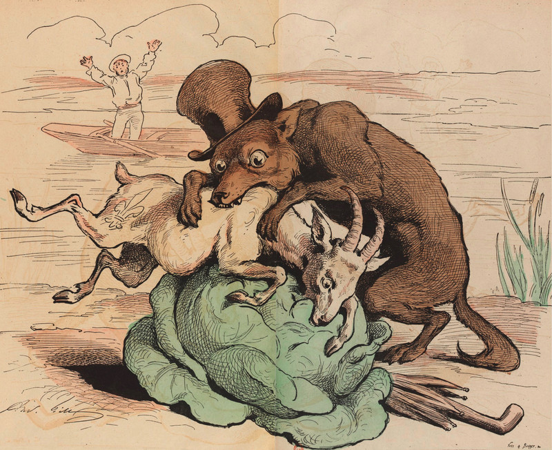 #vintage illustration #political cartoon #goat #carnivore #devoured