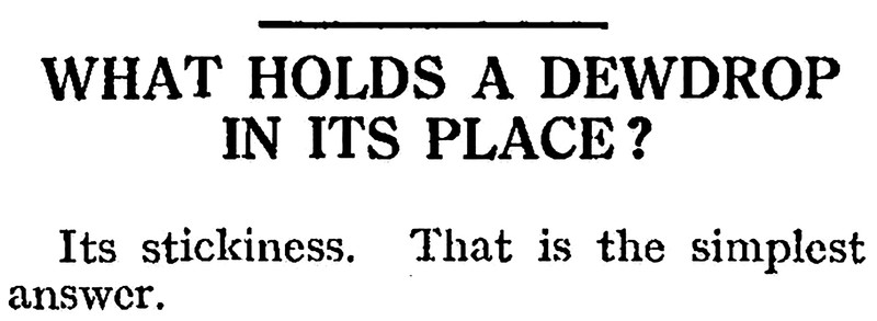 The Children's Newspaper, 1933: simply use the water droplets' stickiness.