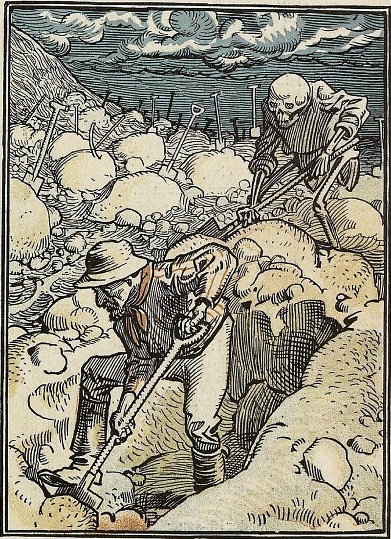 #vintage illustration #death #cemetery #skeleton #grim reaper #open grave #grave digger #digging your own grave