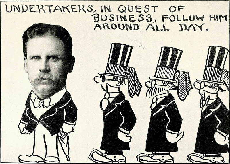 #vintage illustration #coffin #doctor #vintage yearbook #yearbook #illustration #undertaker #doctor death #1910s