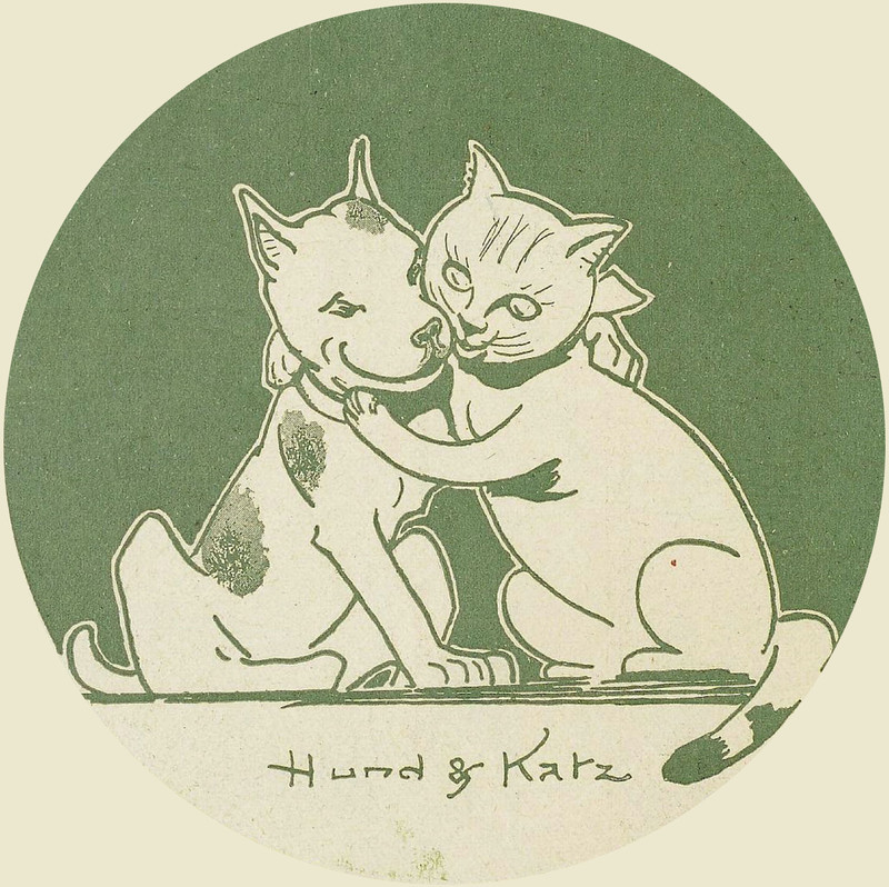 #vintage illustration #cat and dog #dog and cat #animal love #getting along #hund & katz #hund & katz