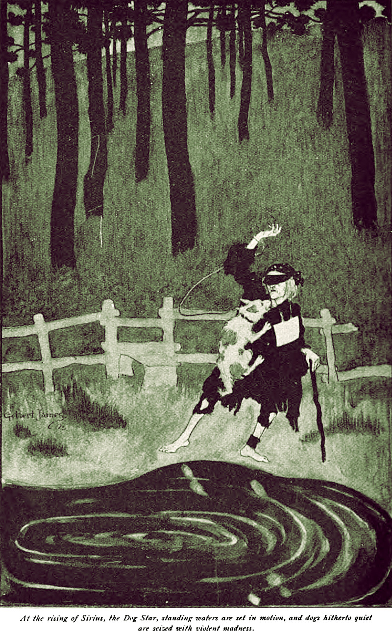 "At the rising of Sirius, the Dog Star, standing waters are set in motion, and dogs hitherto quiet are seized with violent madness." From English Illustrated, 1895.