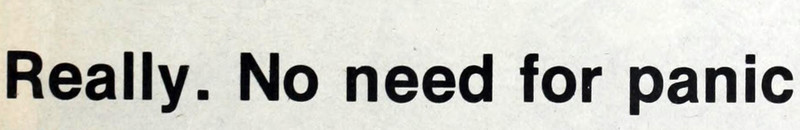 "Really.  No need for panic."  A headline from Medium II newspaper (Mississauga), 1978.