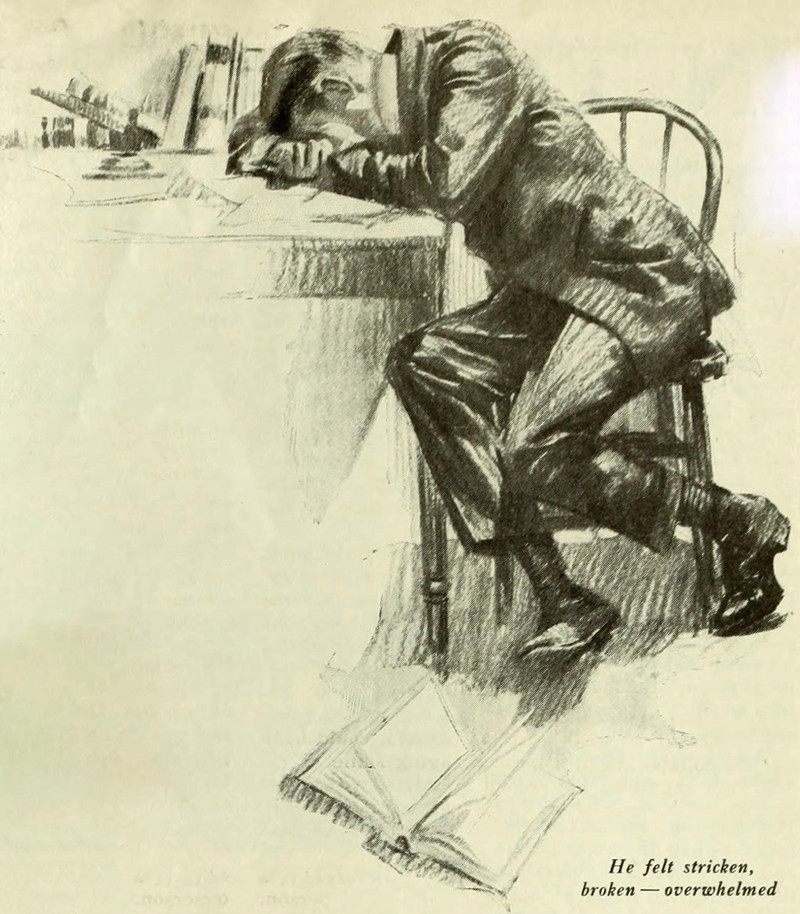 "He felt stricken, broken--overwhelmed."  From Collier's, 1915.