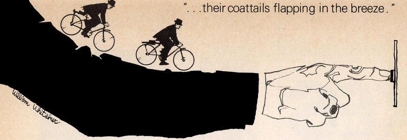 #vintage illustration #giant #bicycle #tiny men #arm #doorbell
