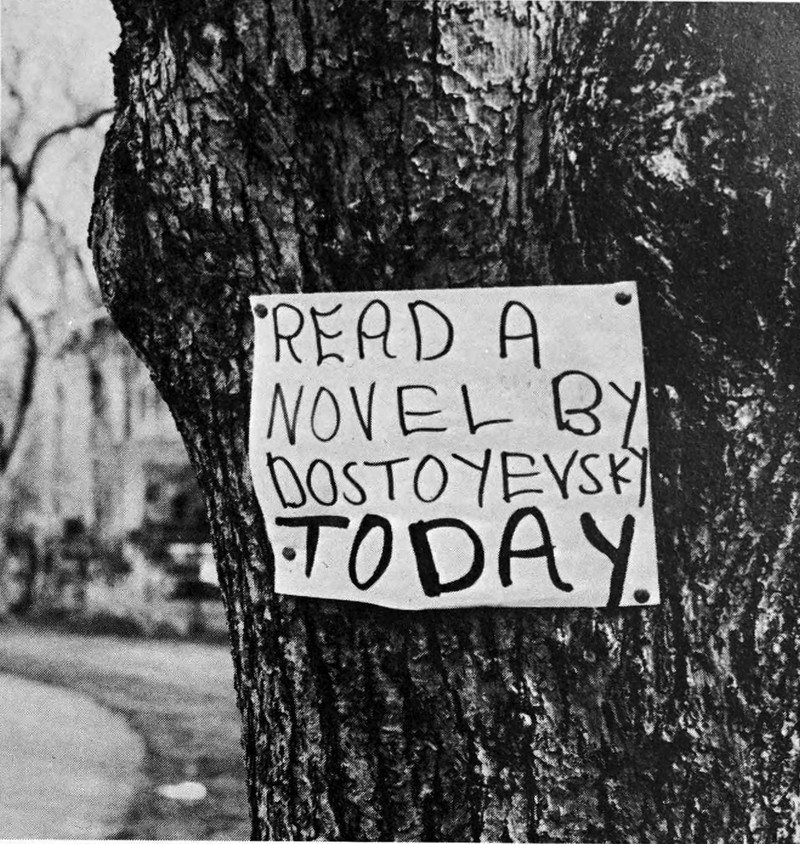 "Read a novel by Dostoyevsky today."  From Tufts University's 1968 yearbook.