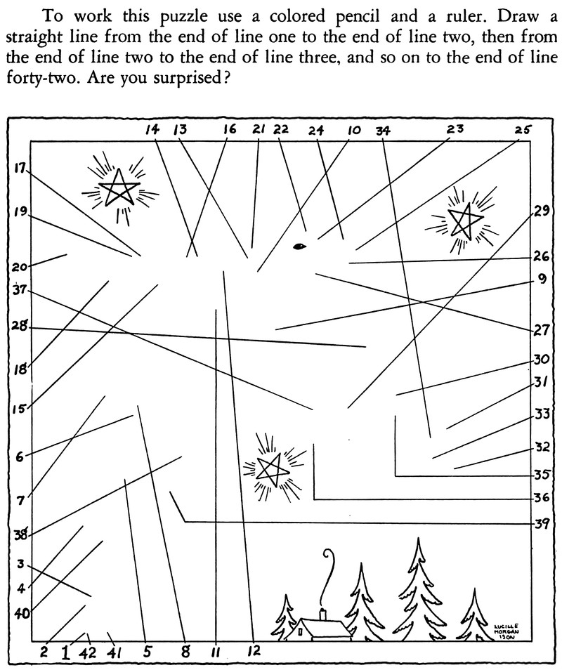Though this is a very simple dot-to-dot puzzle, it's nowhere as simple as this one(!!!) From We Can Read Mr. Whiskers by Gerard, McInnes & McLean, 1962.