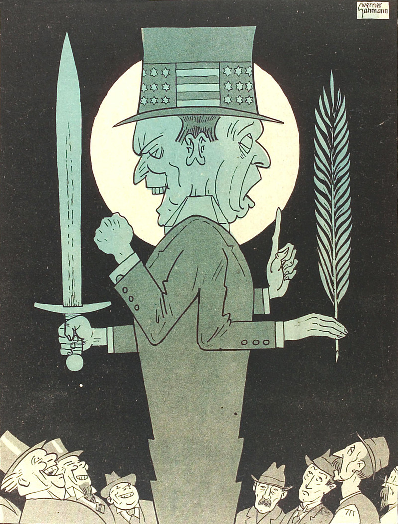 #vintage illustration #political cartoon #janus #two-faced #war and peace #two face #double faced