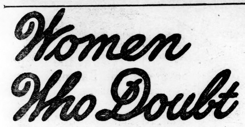 "Women who doubt."  From the Duluth Evening Herald, 1909.