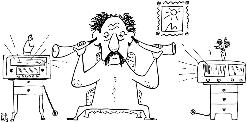 #vintage illustration #ear trumpet #radio #stereo