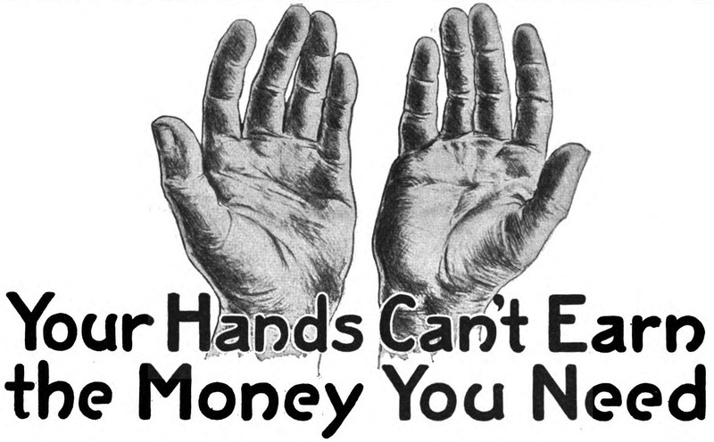 "Your hands can't earn the money you need."  From Ambition magazine, 1915.