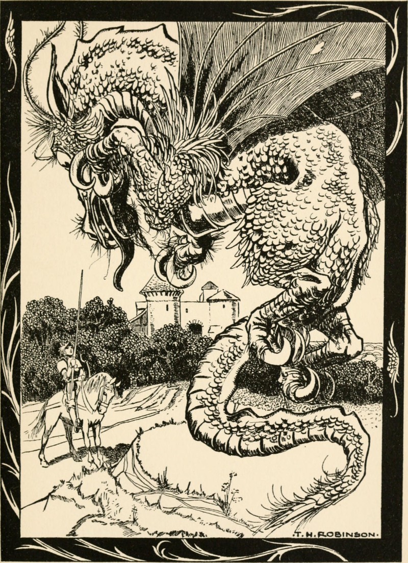 #vintage illustration #dragon #knight #faery queen #edmund spenser #faerie queen #illustration