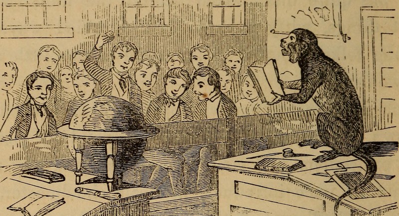 #vintage illustration #monkey #classroom #education standards #bad teacher #1870s #illustration #smart animal #art