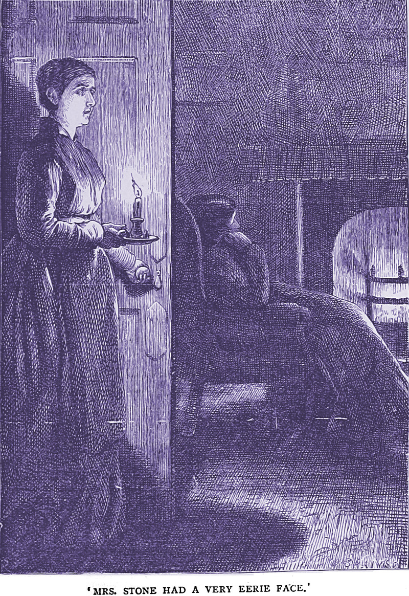 "Mrs. Stone had a very eerie face," from By Still Waters by Edward Garrett, 1884.