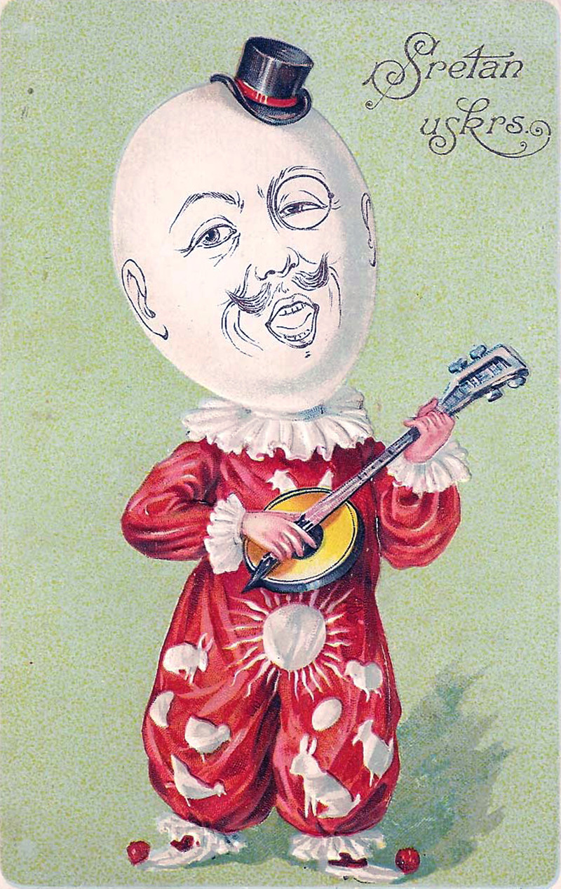 Humpty Dumpty didn't just sit on a wall, as we see in this Croatian postcard, date uncertain.