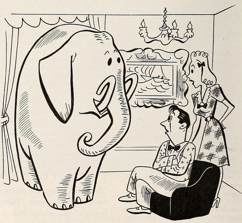 You've heard of the "elephant in the room," and it turns out every home should have one. The headline reads, "What is home without an elephant?" From The Judge, 1921.