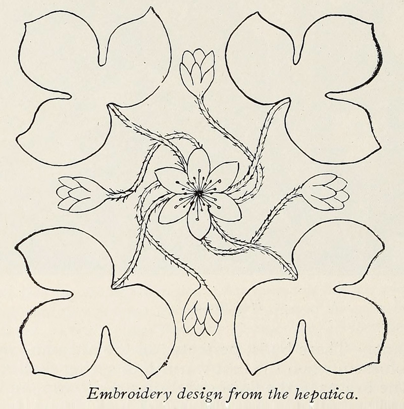 #vintage illustration #flower #illustration #1910s #embroidery #hepatica #buttercup