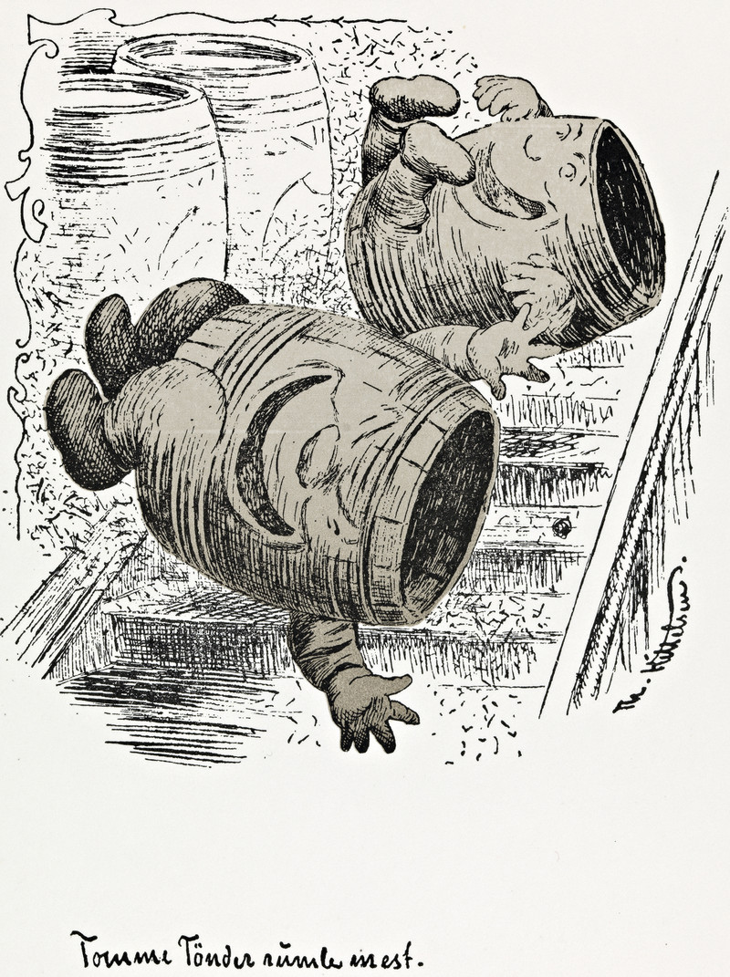 "Tomme tønner ramler mest."  By Theodor Kittelsen, 1898.