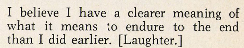 "I believe I have a clearer meaning of what it means to endure to the end than I did earlier.  [Laughter.]"  From The Improvement Era, 1963.