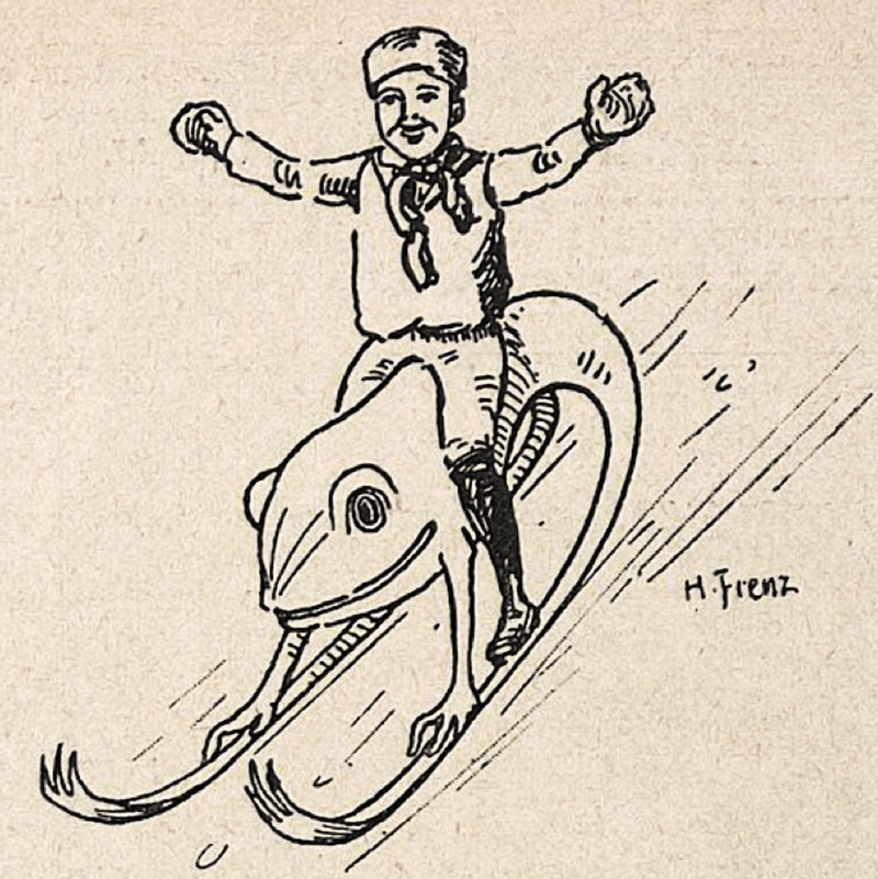 #vintage illustration #frog #sled #winter sports #enjoy life now #frog sledding #frog sled