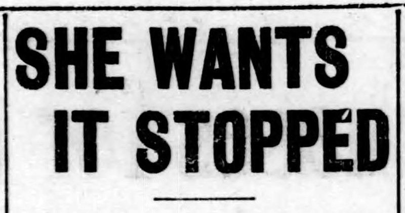 "She wants it stopped."  From The Duluth Evening Herald, 1900.