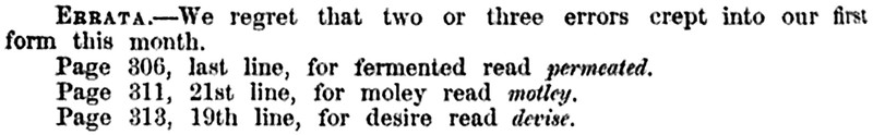 For fermented, read permeated. For desire, read devise. For moley, read motley. "Two or three errors" [spoiler -- it's three] from The Michigan Journal of Education, 1860.